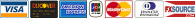 with VISA, MasterCard, Discover, American Express, Dinners, JCB and debit cards with the Visa and MasterCard logo, online checks and PayPal